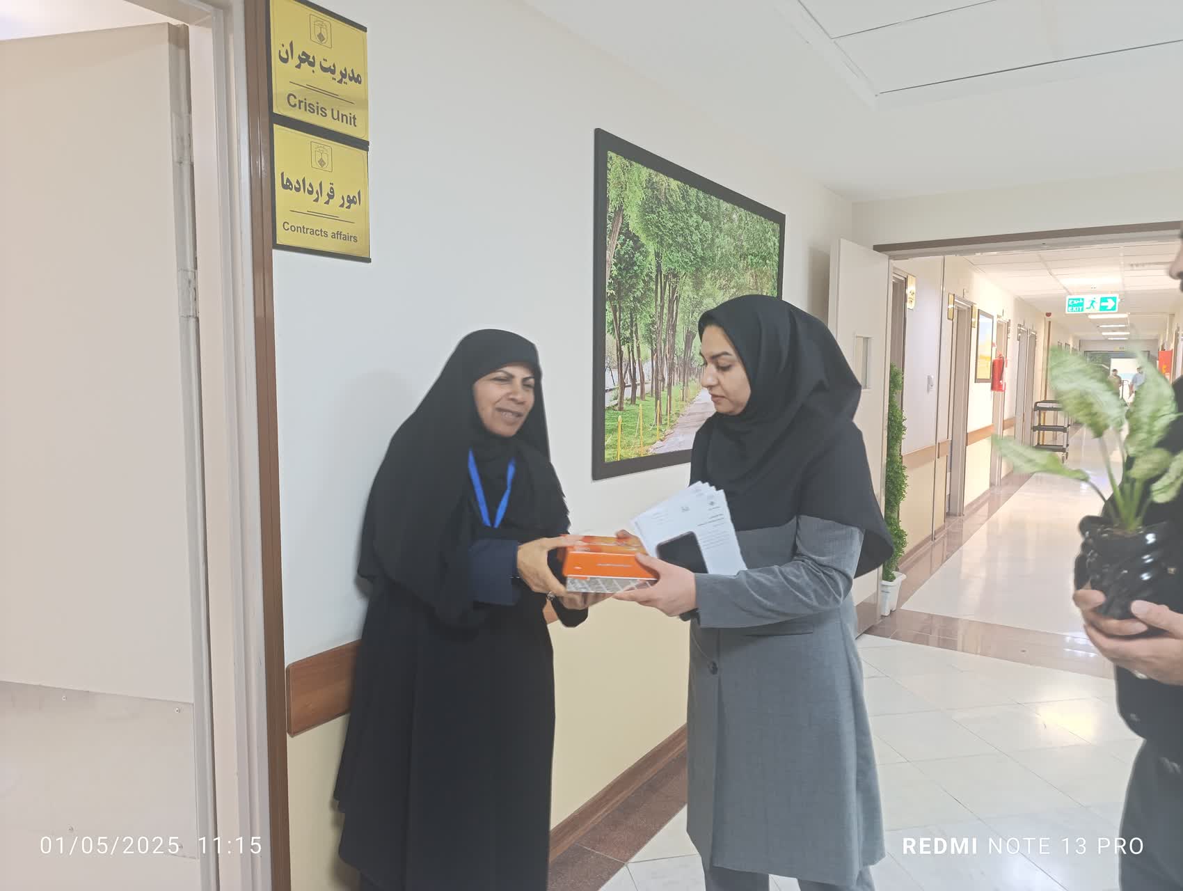 به مناسبت فرارسیدن روز بهداشت حرفه ای و روز روانشناس جناب آقای قاسمی مدیر بیمارستان به همراه مسئولین مرکز، با حضور در واحدهای مربوطه ضمن تبريك اين روز با اهدا گل و شیرینی از پرسنل پرتلاش این واحد ها تقدیر و تشکر بعمل آوردند.