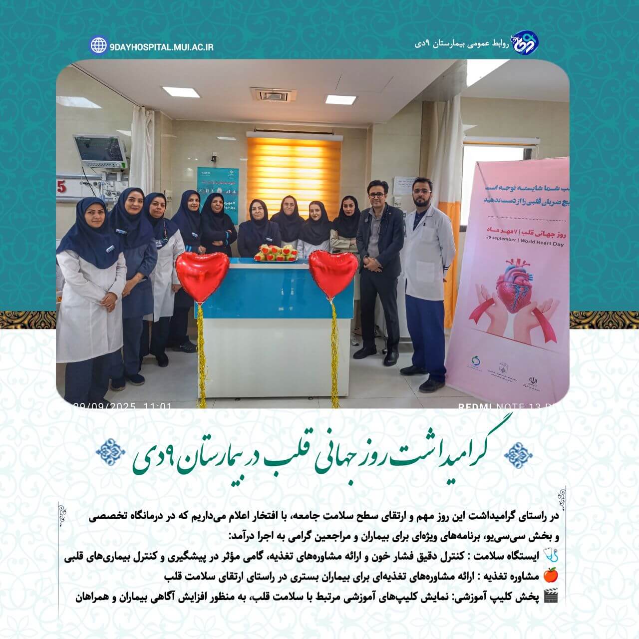 #روز_جهانی_قلب #سلامت_قلب #بیماری_قلبی #درمانگاه_تخصصی #سی_سی_یو #مشاوره_تغذیه #پیشگیری_بیماری #واحد_آموزش_سلامت #بیمارستان_۹دی #بیمارستان #سلامتی #قلب_سالم #کلیپ_آموزشی #فشار_خون #تغذیه_سالم